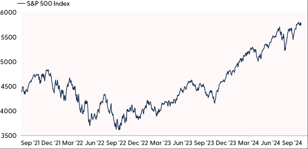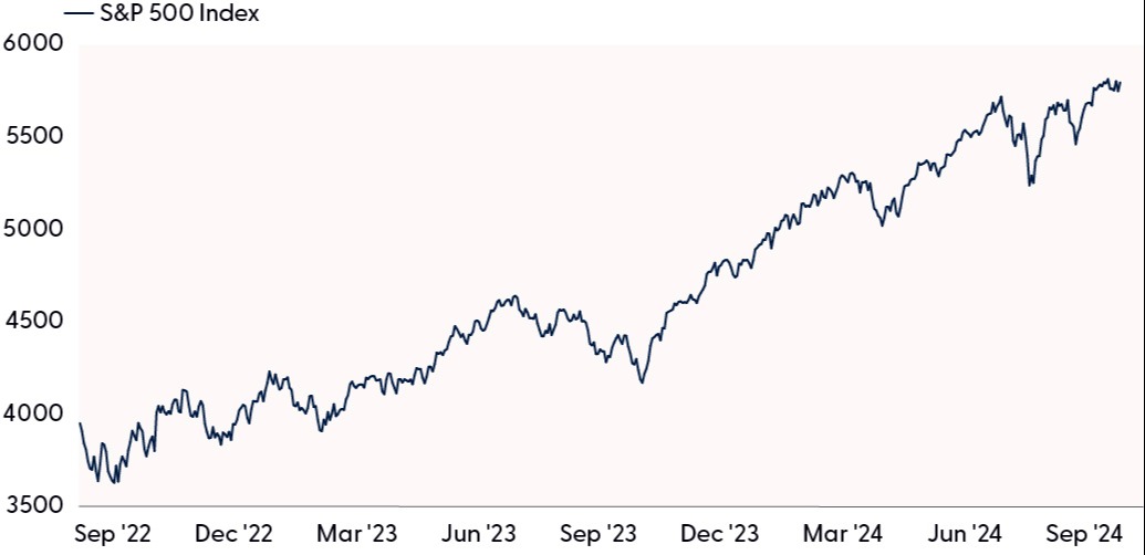 From the October 12, 2022, low to its two-year anniversary, the S&P 500 has gained approximately 60%, and with the preponderance of gains accumulated in 2024 coupled with higher valuations, there are concerns that with geopolitical risks rising, markets could face bouts of serious volatility.