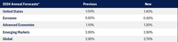 The stronger employment figures tell us that businesses and households have stronger momentum going into 2024, and therefore, we believe it is prudent to increase our forecasts for economic growth. Headwinds remain but on an annual basis, we believe the U.S. and global economy is poised for a bit stronger growth this year than originally forecasted last year.