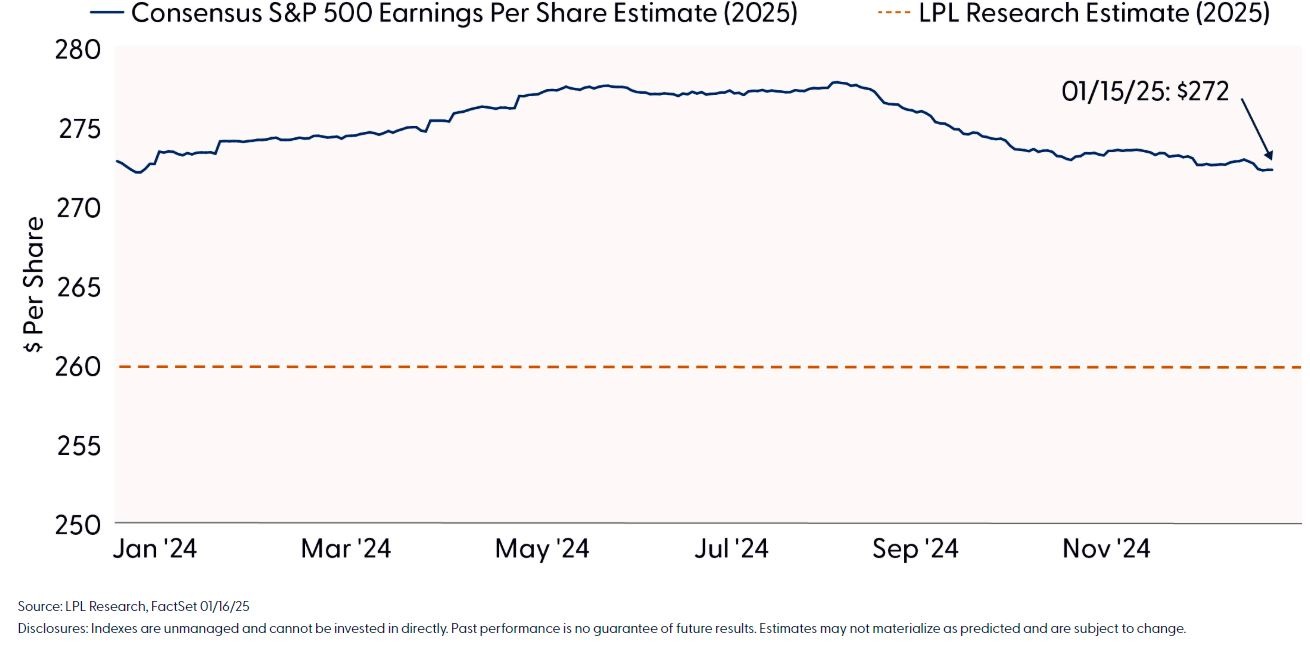 LPL Research’s forecast of $260 per share in S&P 500 earnings in 2025 could end up a little light