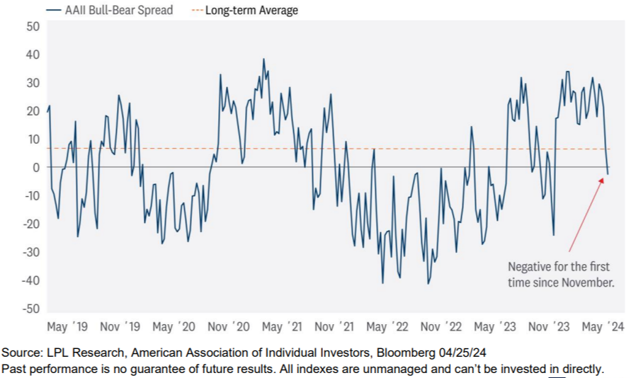 Sentiment had been trending at above-average levels of bullishness this entire year. Part of that optimism was driven by expectations for a string of interest rate cuts, but stronger-than-expected economic data and earnings and excitement over artificial intelligence have also contributed.