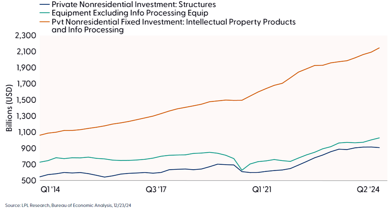 - If the job market cools, consumer spending will likely moderate in 2025, while pent-up demand for capital investment could provide support.