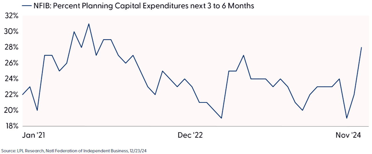 Many businesses admitted they temporarily delayed business fixed investments preceding the presidential election and planned to wait until after results were finalized and the policy outlook was a bit clearer. As we have seen, policy tailwinds supported the business and consumer outlook.